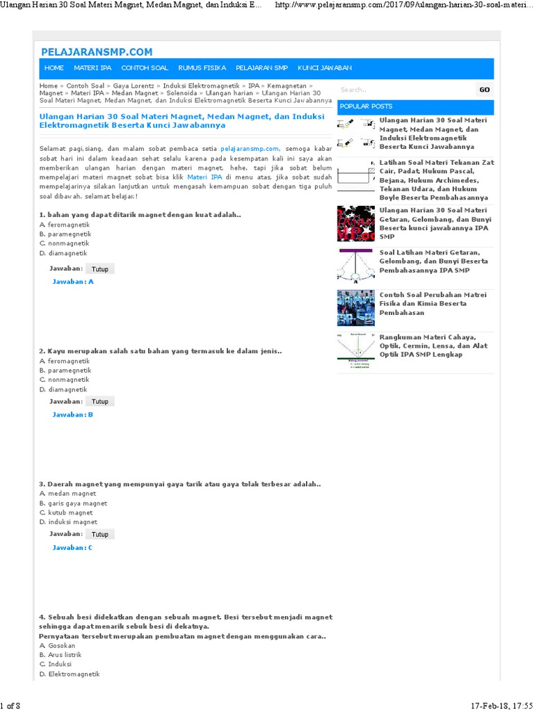 / Soal Pilihan Ganda Tentang Induksi Elektromagnetik : Nbsp Web Viewbagaimana Prinsip Kerja Generator 9 Bagaimana Prinsip Kerja Trafo 10 Apakah Trafo Ideal Itu Dan Apa Syaratnya Soal Soal Pilihan Ganda 1 Docx Document / Last record about hot contoh soal kemagnetan dan induksi.