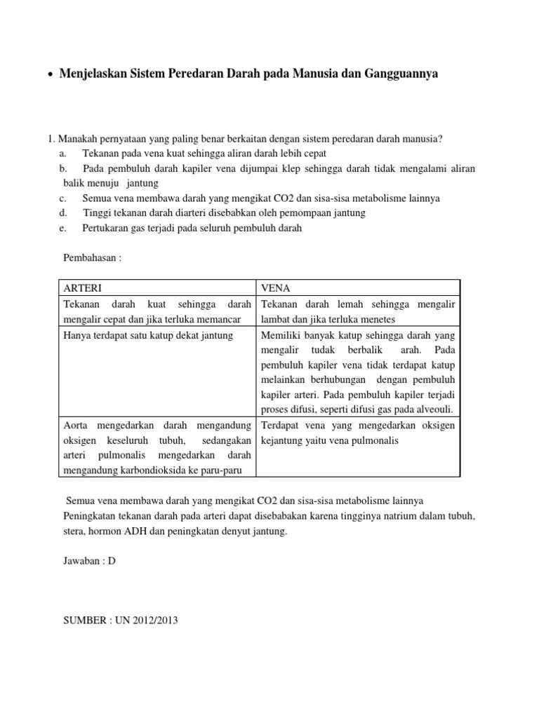 Soal Hots Un Sistem Peredaran Darah Smp : 3 / Pembuluh darah dalam tubuh manusia yang mengandung banyak o2 yaitu ….